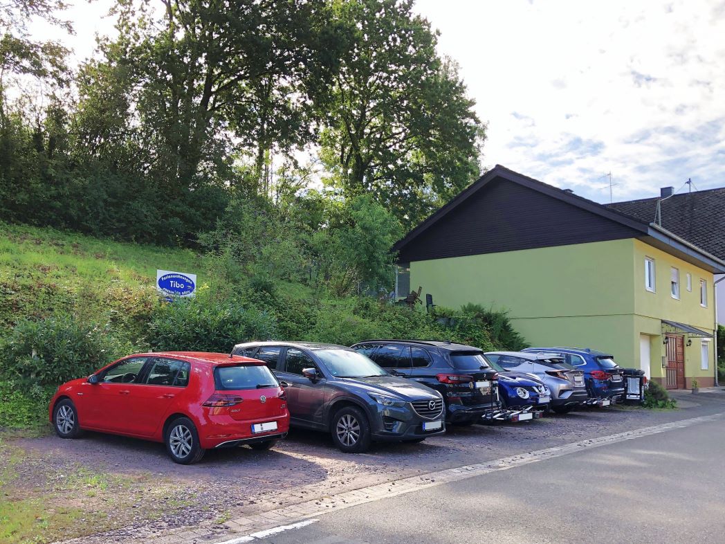 Unsere eigenen, kostenlosen Parkplätze befinden sich gegenüber von unserem Ferienhaus. Sie können aber auch auf dem ca. 250 m entfernten Dorfplatz parken.